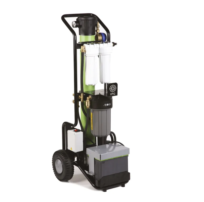 Available battery-powered or in 220V electrical. Four-stage filtration system purifies water by eliminating residue and chlorine, ensuring excellent cleaning.